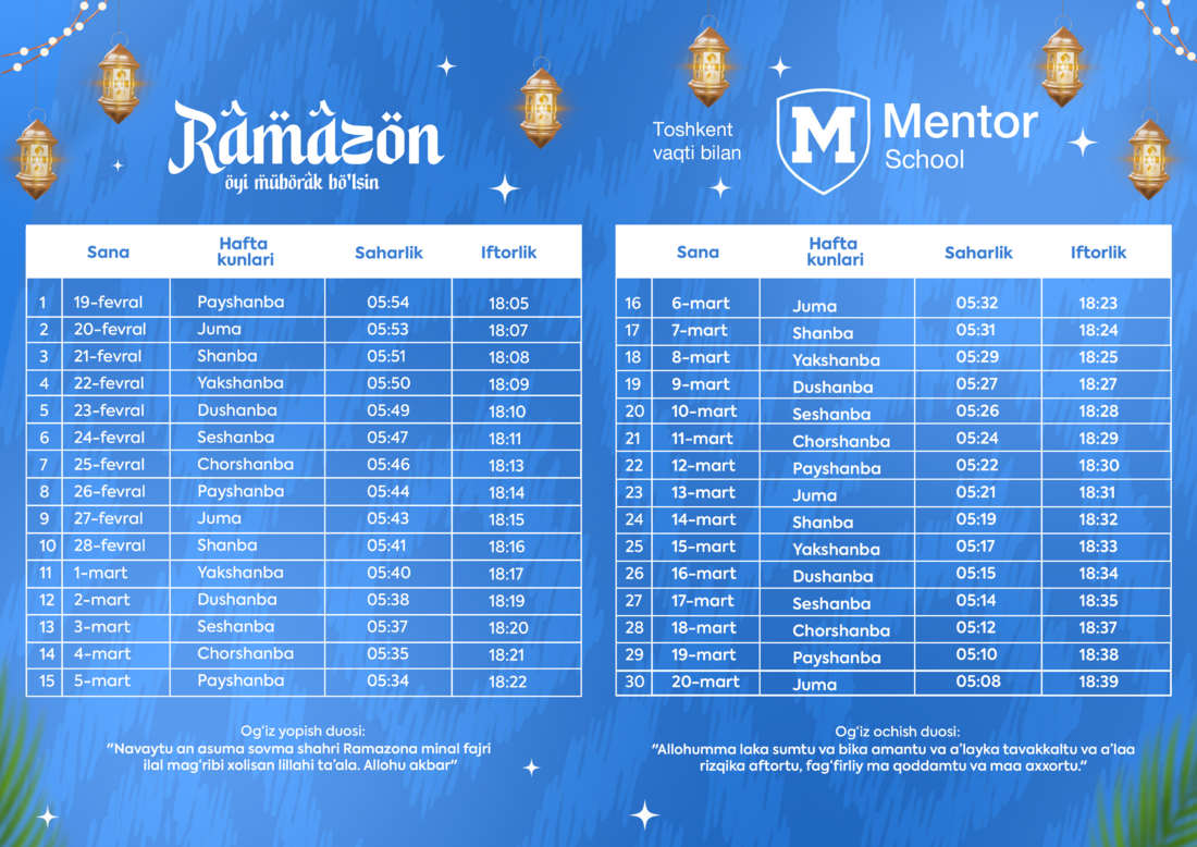 Mentor school jamoasi barcha yurtdoshlarimizni ushbu muqaddas oy bilan chin qalbdan tabriklaydi!